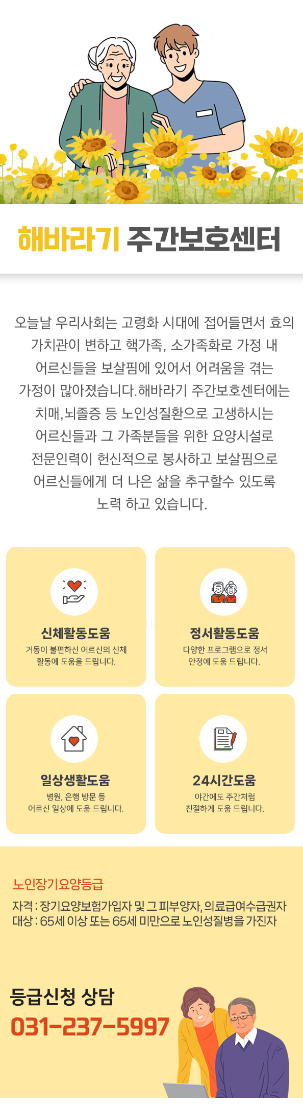 해바라기 주간보호센터에 오신걸 환영합니다.